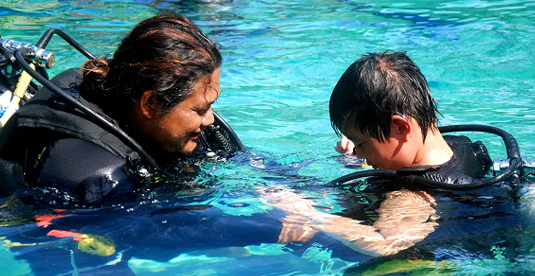 水肺潜水是小朋友也可以加入的家庭休闲计划,这甚至已经成为最新时尚!学习泡泡小勇士需要具备良好的水性,倒也不必是游泳健将。这项课程的最大深度为2米。