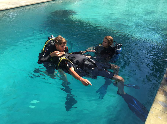 在您经验丰富的PADI教练带领下在游泳池练习现实情境的救援