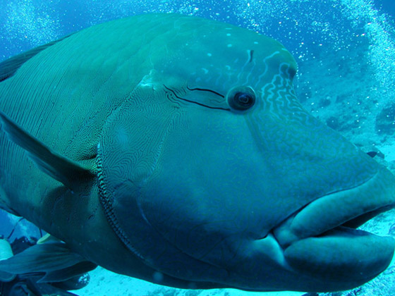 Kubu潜点的大蓝水里常有礁鲨、梭鱼和隆头鹦哥出没。