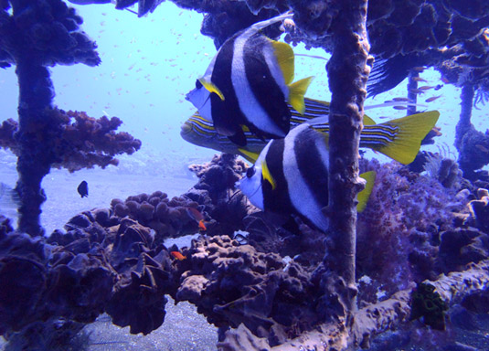 当车子开始离开主干道拐进艾眉湾的小渔村,你会马上感受到那种更放松的氛围。Amed是一个小小的渔村,围绕着一条沿海湾蜿蜒的大马路。我们的休息点位于海湾中部的海滩边,出入水很方便,景观又漂亮。这处平静的海湾少有水流,浮潜点直接从海滩入水即可。Amed或者又叫Jemeluk湾有很多种类丰富的海洋生物,是鼎鼎大名的巴厘岛浮潜不应错过的一处地点。这里常能见到鹦鹉鱼(parrot fish),天使鱼(angel fish),镰鱼(moorish idol),鲷鱼(snapper)等等。运气好的时候,也许会见到海龟或小礁鲨。